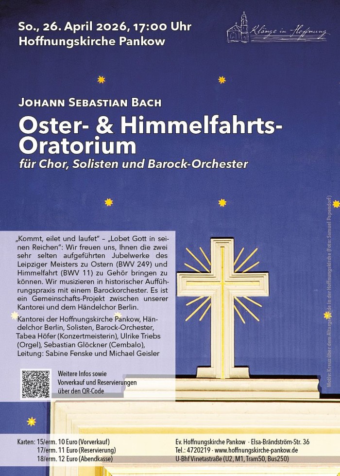 KONZERT: Sonntag, 26.04.2026, 17:00 Uhr, Oster- & Himmelfahrts-Oratorium von Johann Sebastian Bach